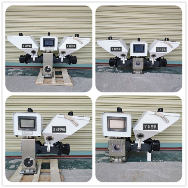 9. 可选择由两台标准的混合器配备搅拌系统而组成的双色混合器,可同时 输送两种不同的色母原料。